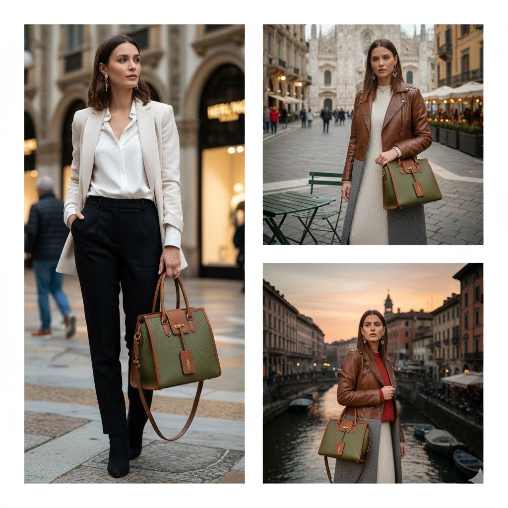 Sac de Ville Élégance Milanaise Vert et Camel